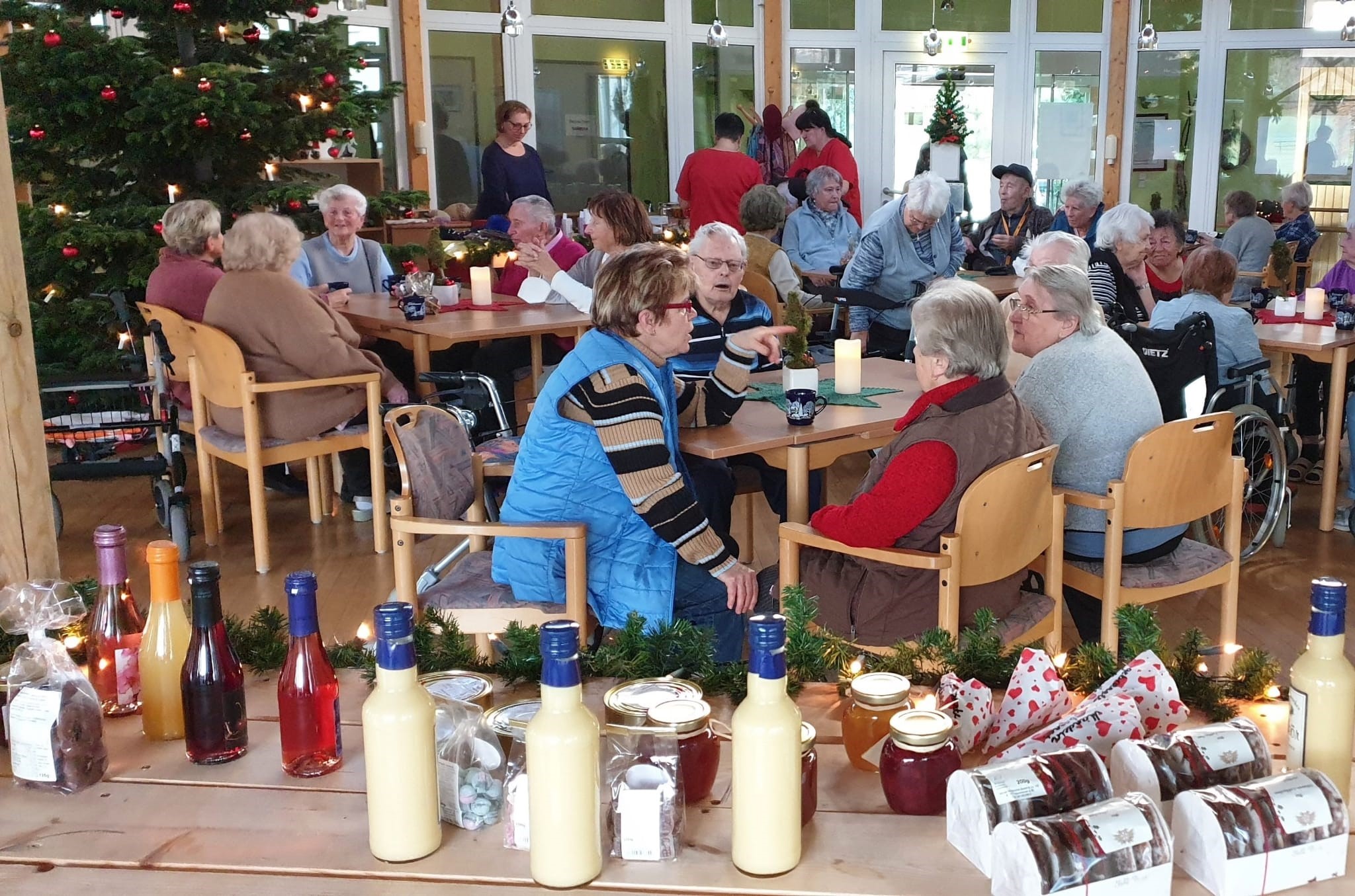 Im AWO Pflegeheim „Am Birkenwäldchen“ fand ein kleiner Weihnachtsmarkt statt. Die Bewohner, ihre Angehörigen und Besucher konnten an verschiedenen Buden kleine Geschenke, Kosmetik, Floristik, Handarbeitssachen und mehr erwerben. Frische Quarkspitzen, hausgebackene Plätzchen, Stollen, Glühwein und Roster frisch vom Grill sorgten für ein tolles kulinarisches Angebot.