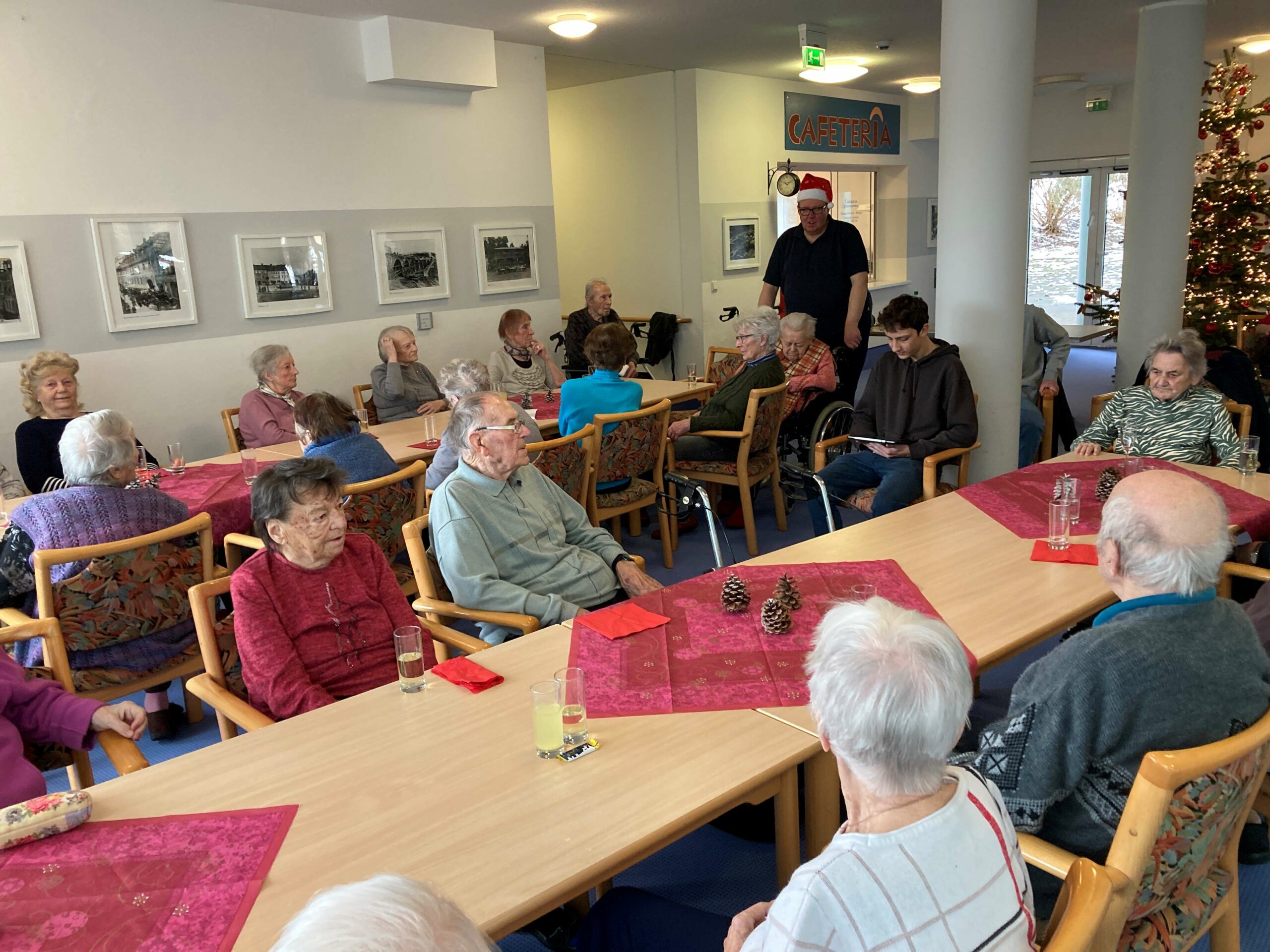 Am Freitag, dem 6. Dezember 2024, waren wie jedes Jahr die Schüler und Schülerinnen des Friedrich-Schiller-Gymnasiums aus der Klasse 10 b und aus der 11/1 in unserer Einrichtung. Alt und Jung saßen gemeinsam am Tisch und die Schüler*innen haben Geschichten vorgelesen.