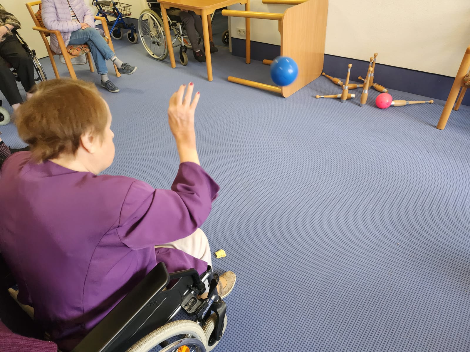 Diese Herausforderung erforderte nicht nur feinfühlige Koordination, sondern auch ein gutes Maß an Kommunikation und Zusammenarbeit zwischen den Teilnehmer*innen. Mit viel Lachen und gutem Willen versuchten die Bewohner*innen, den Ball in die richtige Bahn zu lenken. Dabei kam es auf jede Handbewegung und das Zusammenspiel aller Beteiligten an.