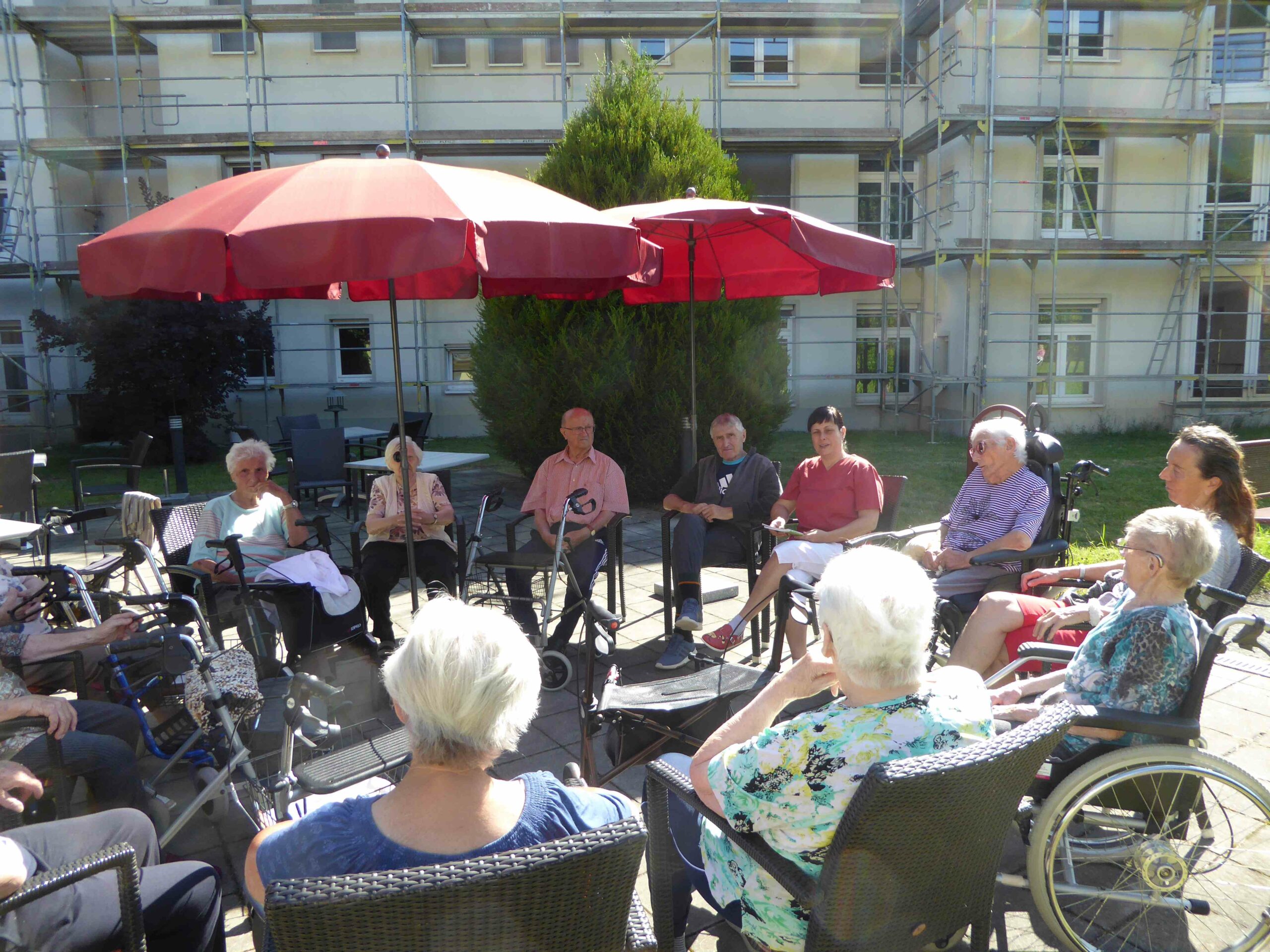 Nach einer langen Zeit konnten sich unsere Bewohner*innen endlich mal wieder zu einer musikalischen Runde zusammenschließen. Dazu setzten sich alle nach dem Mittagessen auf die Terrasse des Hauses „Am Birkenwäldchen“ und genossen die Sonne in vollen Zügen.