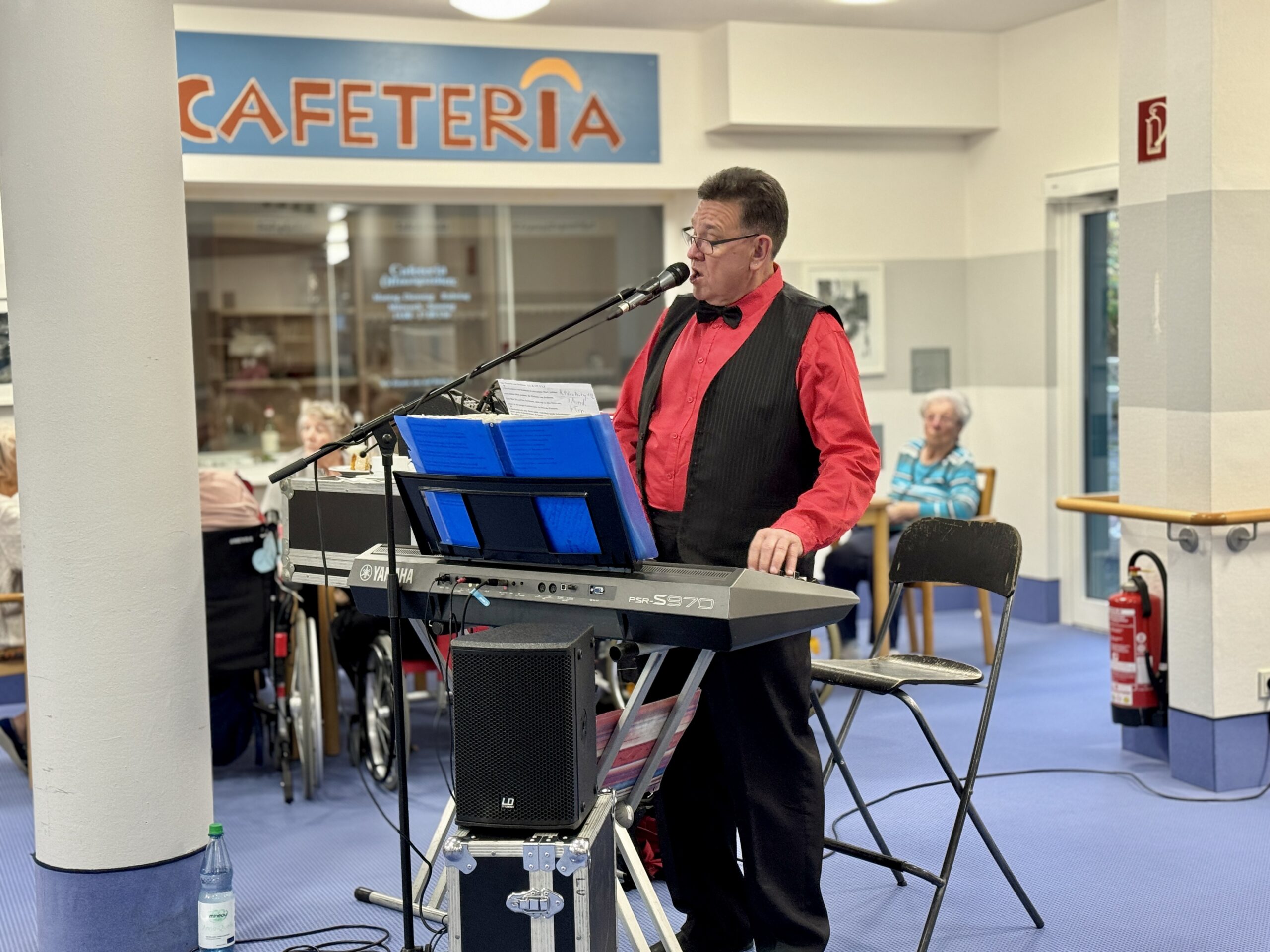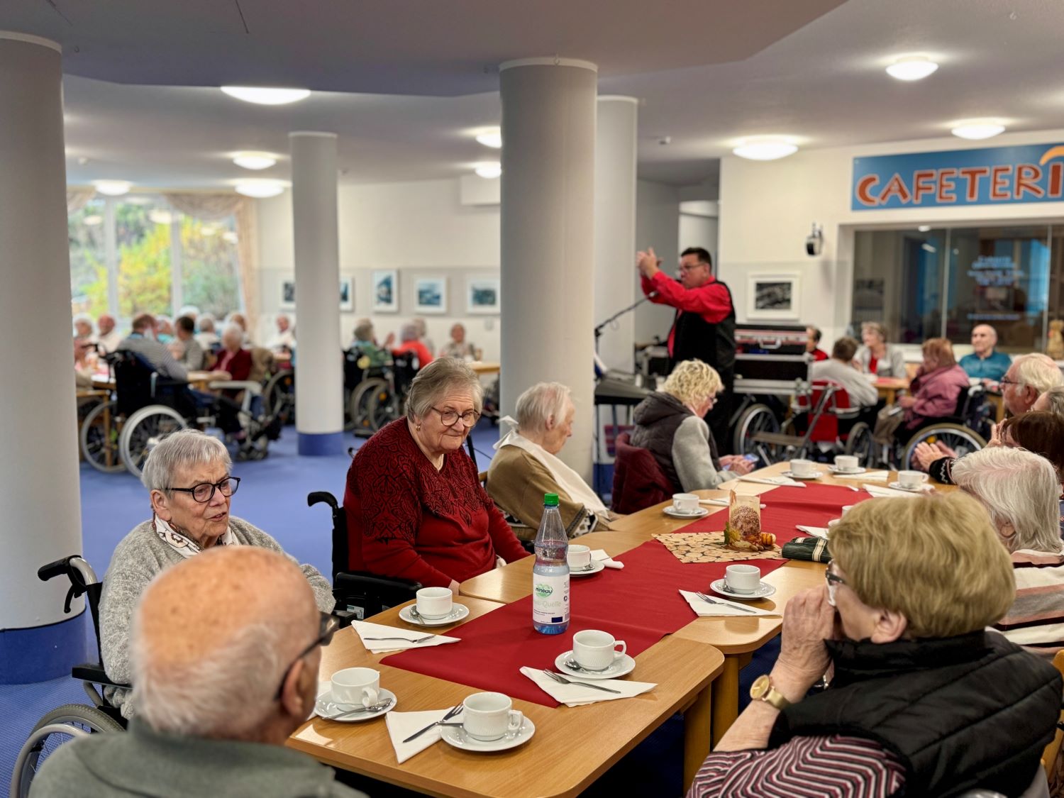 Musikalisch wurde der Nachmittag von Herrn Daniel begleitet, der mit seiner Musik das Herz berührte und für eine stimmungsvolle Unterhaltung sorgte. Seine Darbietungen luden nicht nur zum Zuhören, sondern auch zum Mitsummen und Mitsingen ein, was die Stimmung zusätzlich auflockerte und für viele Heiterkeitsmomente sorgte.