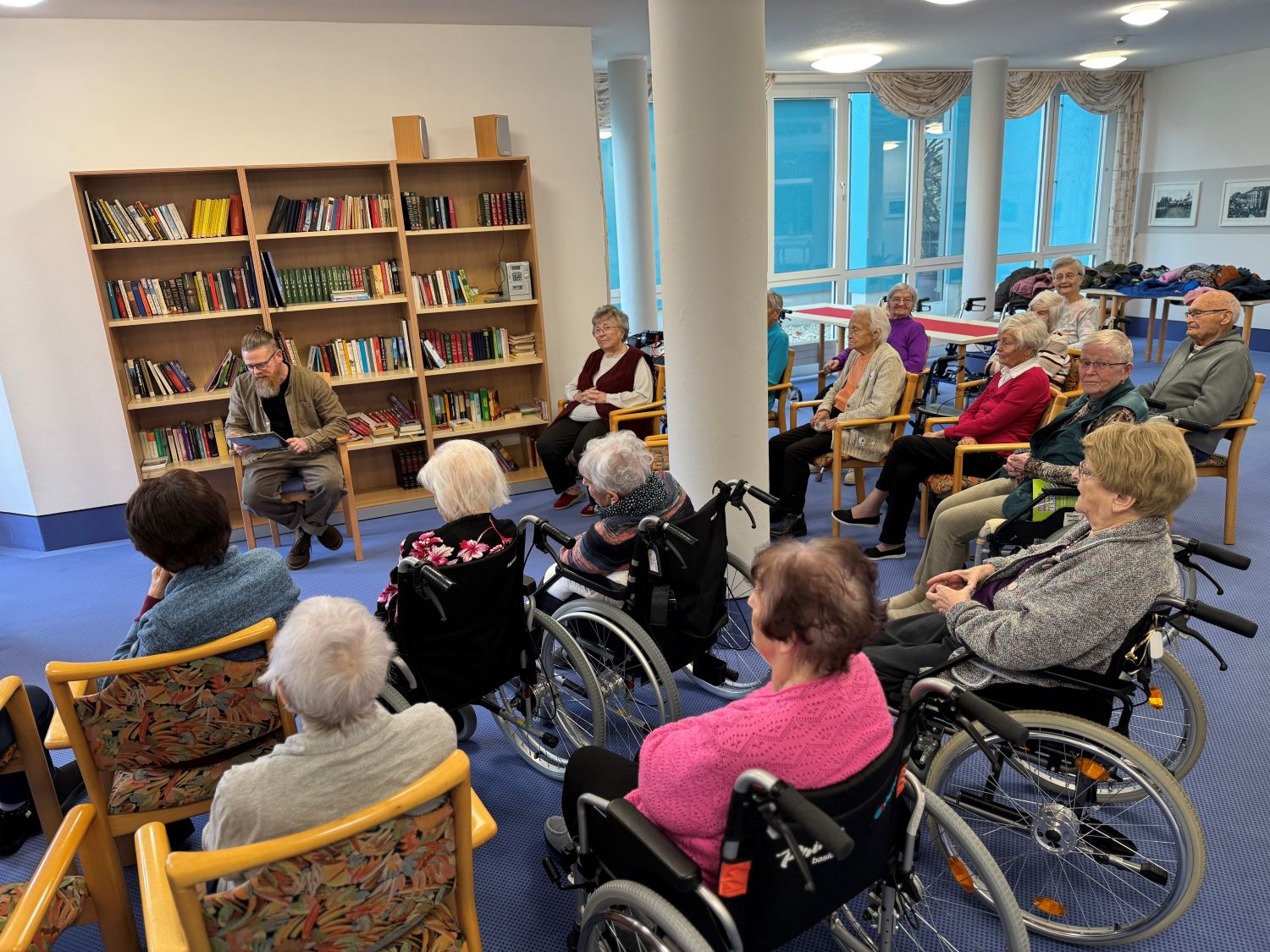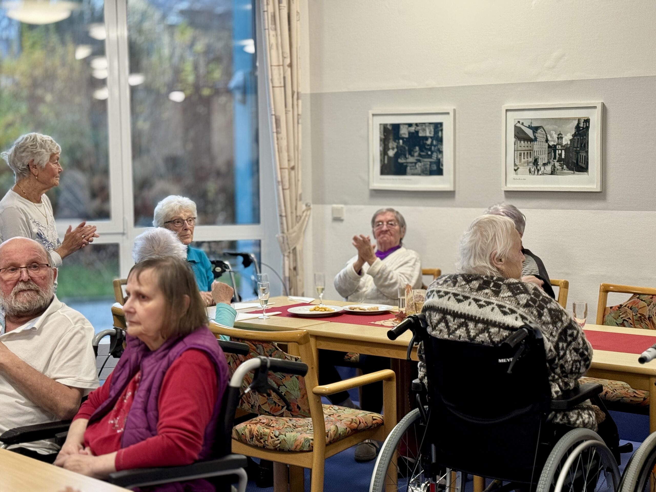 Am Freitag, dem 6. Dezember 2024, waren wie jedes Jahr die Schüler und Schülerinnen des Friedrich-Schiller-Gymnasiums aus der Klasse 10 b und aus der 11/1 in unserer Einrichtung. Alt und Jung saßen gemeinsam am Tisch und die Schüler*innen haben Geschichten vorgelesen.