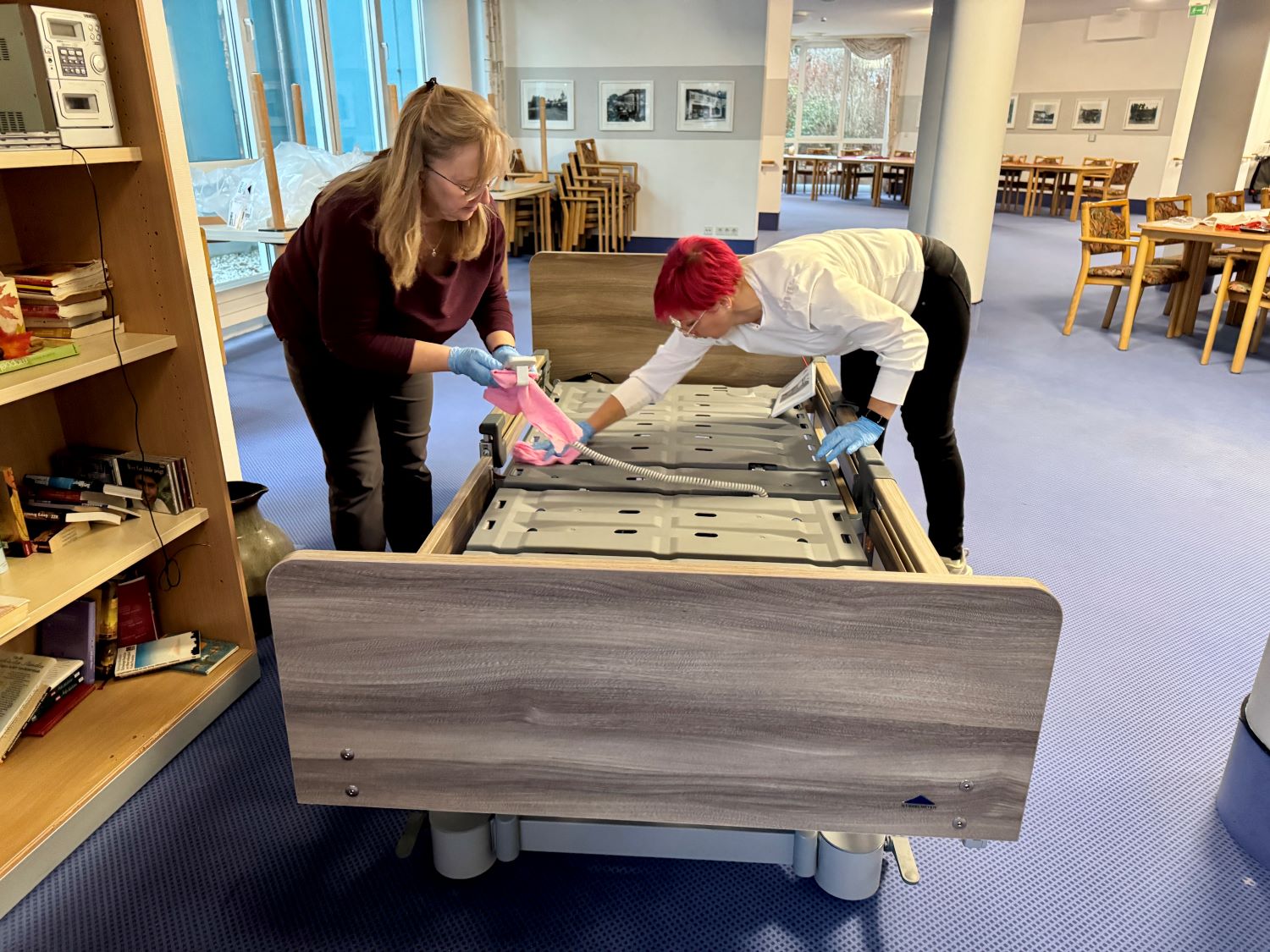 Im AWO AJS Seniorenzentrum „Zum Stausee“ in Zeulenroda-Triebes war es ein Tag voller Teamgeist, Fürsorge und festlicher Vorfreude. Die Firma Stiegelmeyer lieferte neue, extrem komfortable Pflegebetten, die vom engagierten Personal zügig und professionell in den Wohnbereichen ausgetauscht wurden. Dank einer guten Planung und vieler helfender Hände konnte der Wechsel reibungslos erfolgen, ohne den Alltag der Seniorinnen und Senioren zu stören.