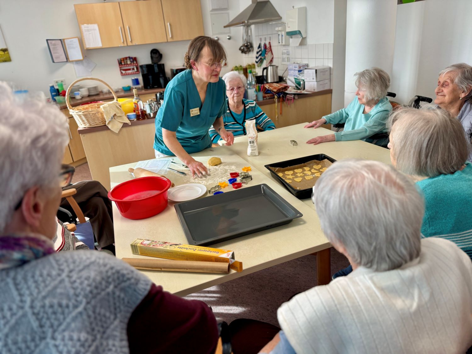 Während hinter den Kulissen geschraubt, gehoben und arrangiert wurde, erlebten die Bewohnerinnen und Bewohner einen gemütlichen Vormittag: In der Beschäftigungsrunde wurde gebacken, gelacht und gemeinsam der Duft frisch aus dem Ofen kommender Leckereien genossen. So blieb die notwendige Logistik im Hintergrund – die Aufmerksamkeit galt dem Miteinander, der Wärme und den schönen Momenten des Alltags.